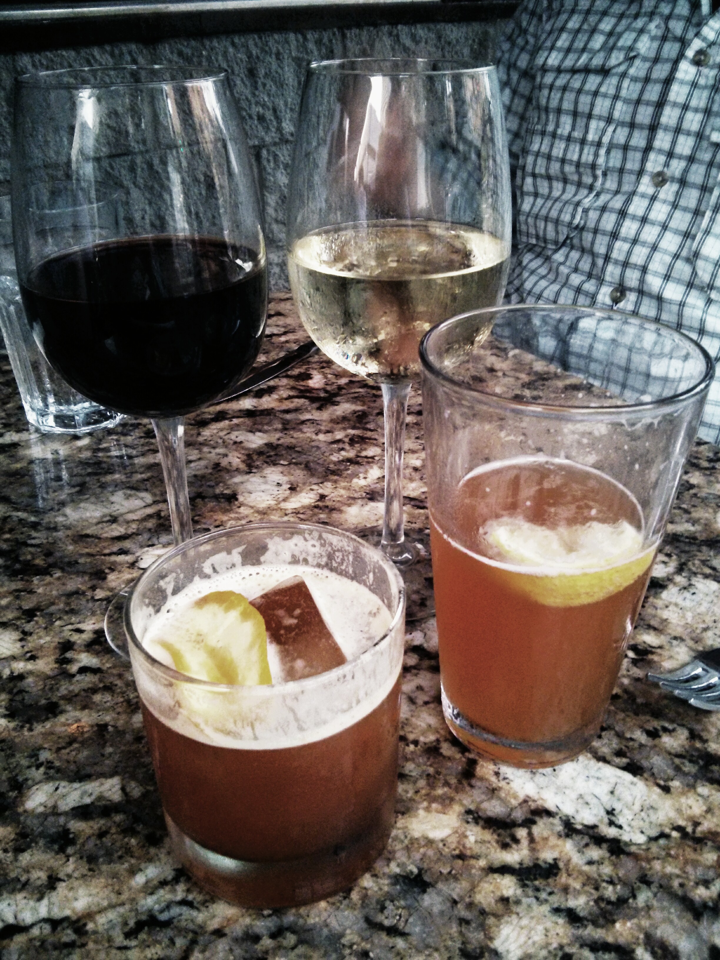 oscar returned with drinks for the table and a basket of bread to go with them. my glass of wine was light with a hint of berries, quite enjoyable! turner’s wine was nice, as were nathan’s beers. jon really liked the bitters in his sicilian sunset. his first few sips were quite large!