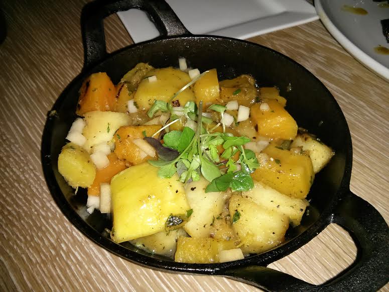 nathan had requested an order of the apple and local squash hash; it was described well enough on the menu to give it a try. nathan said that it was very interesting, and he could tell how people would think it’s great, but he’s not sure it’s his thing. he let me taste it also, and i agree that although it sounds like a good idea, the execution seemed to be a little too bland. i will say, though, that the squash was nicely cooked.
