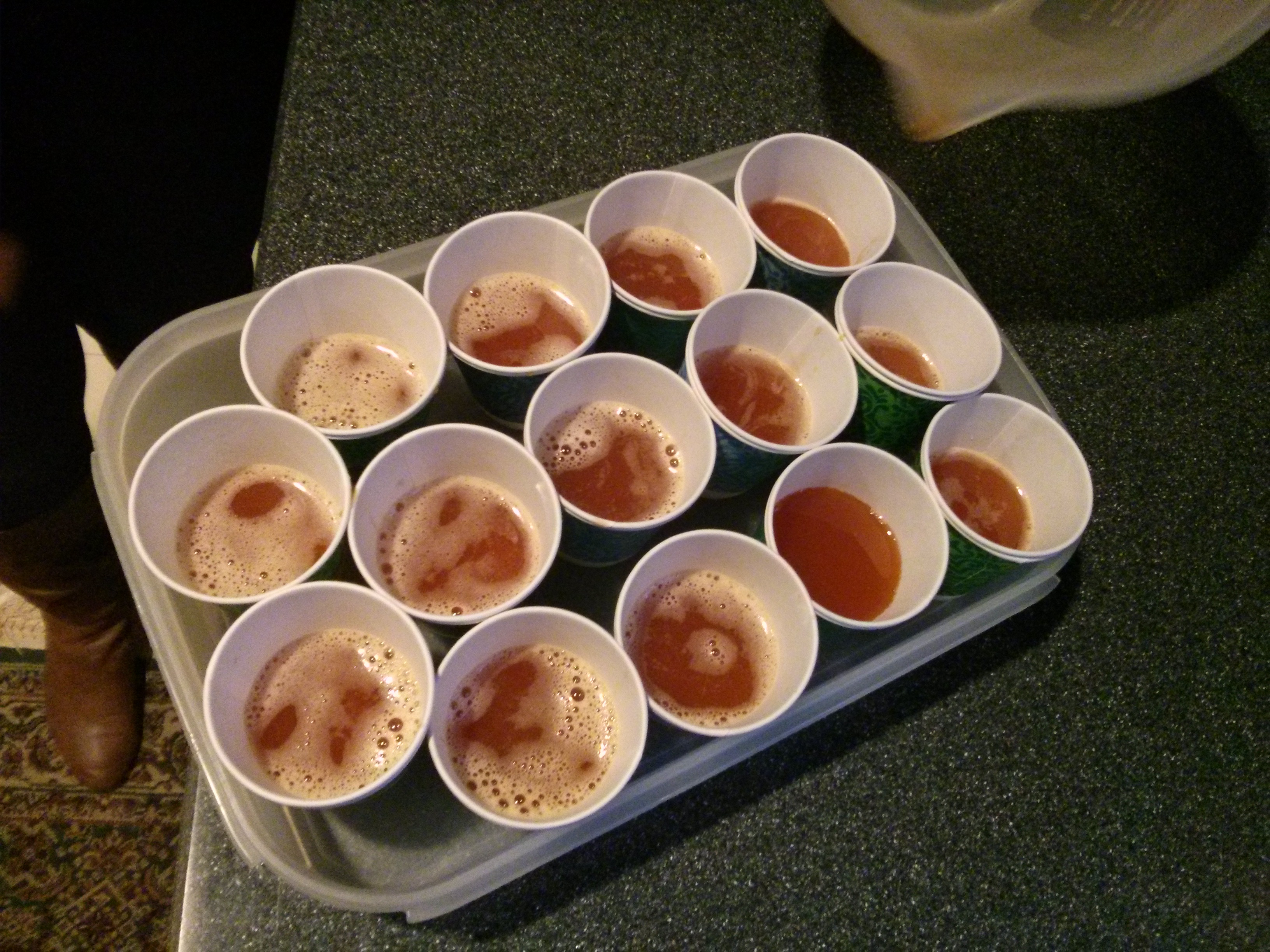 evenly fill all cups and then let them set in the refrigerator.