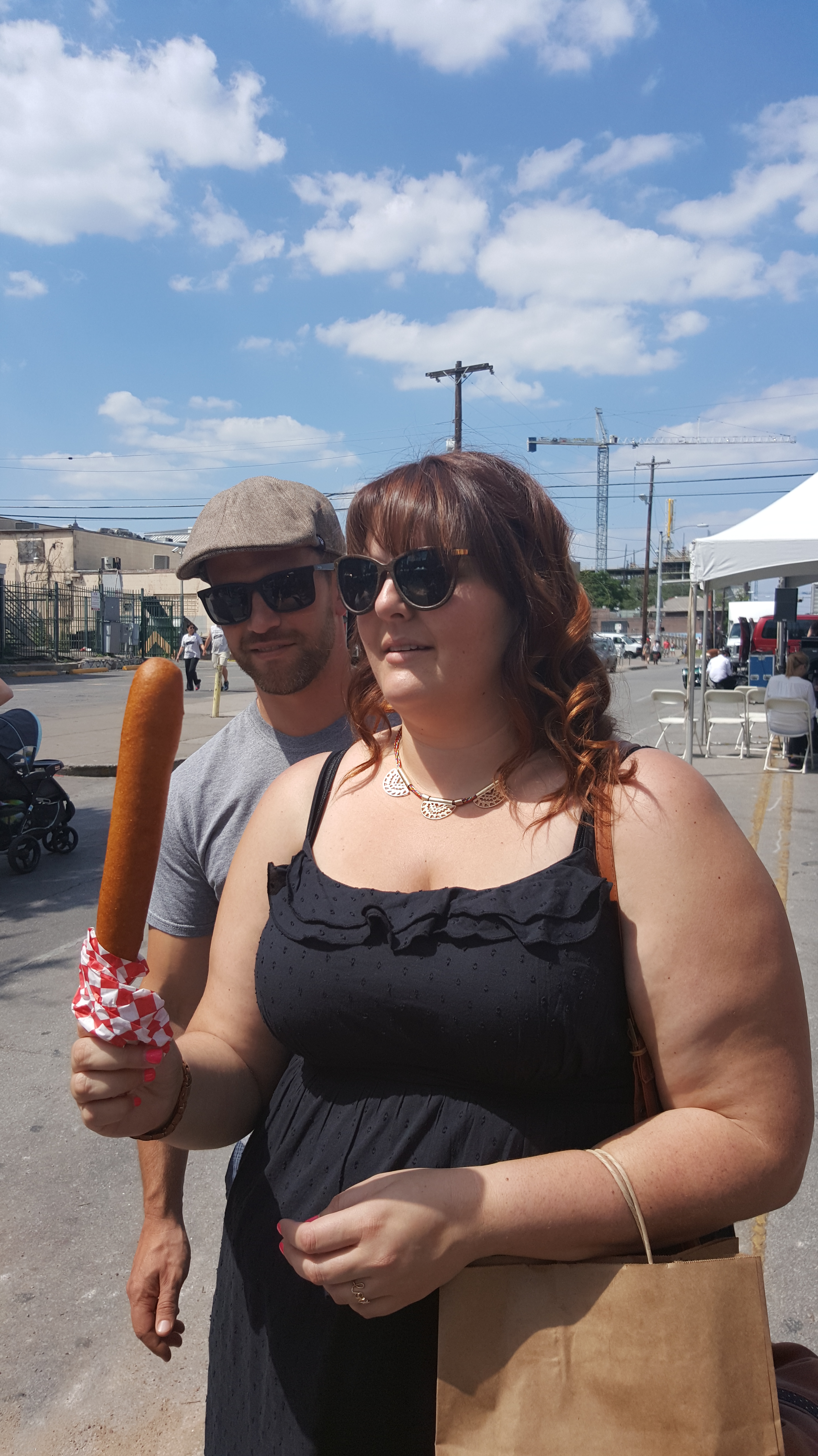we moseyed around a little longer, and even though dinner wasn’t too far away, a few folks stopped to grab some classic carnival snacks, like this: ali ordered a footlong corndog. it was, honestly, as delicious and unhealthy as you would expect it to be. noms!