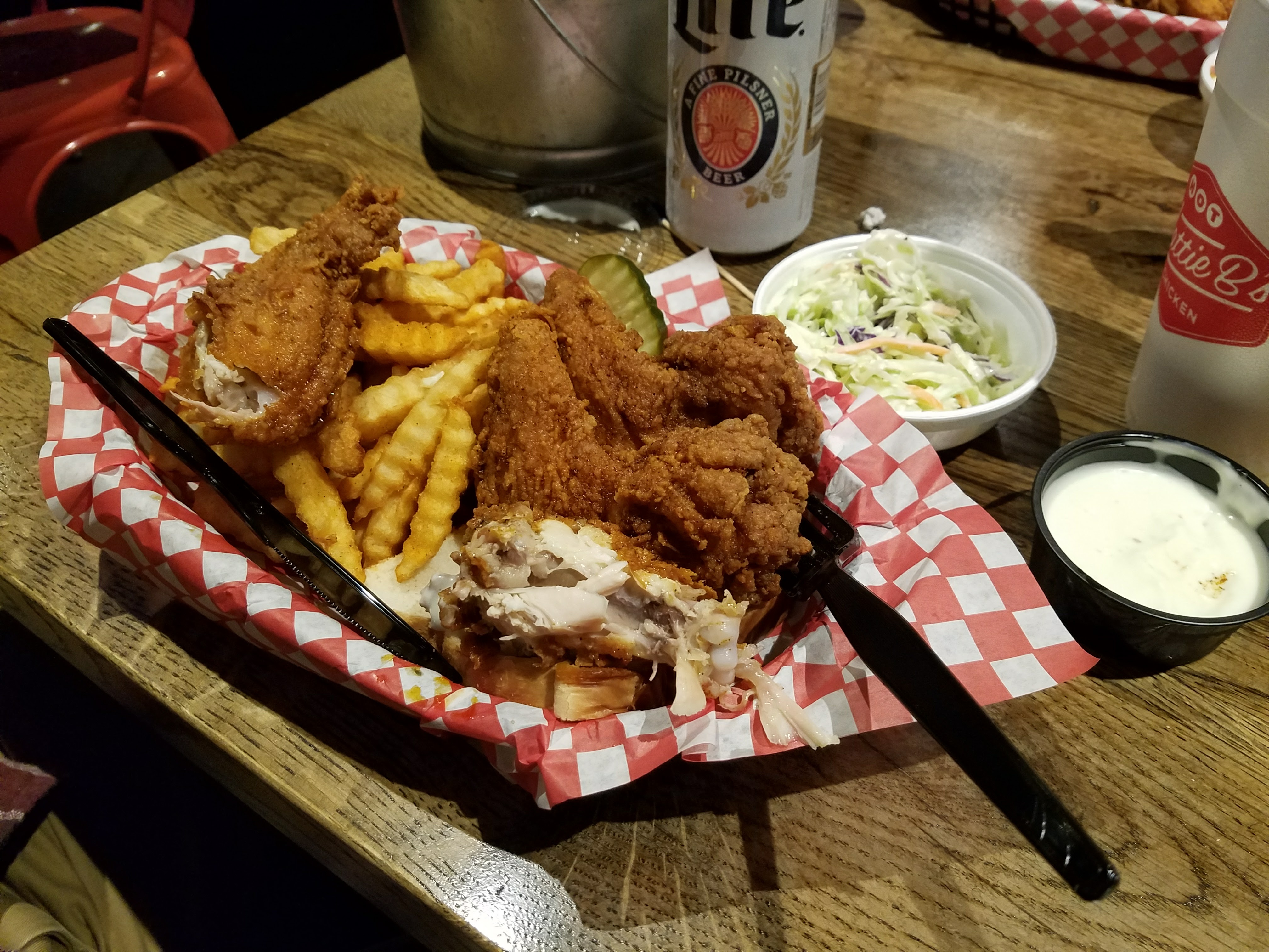 20170211_193813 Published February 15, 2017 at 4032 × 3024 in hattie b’s hot chicken – birmingham, al ← Previous Next → wings, fries, & coleslaw.